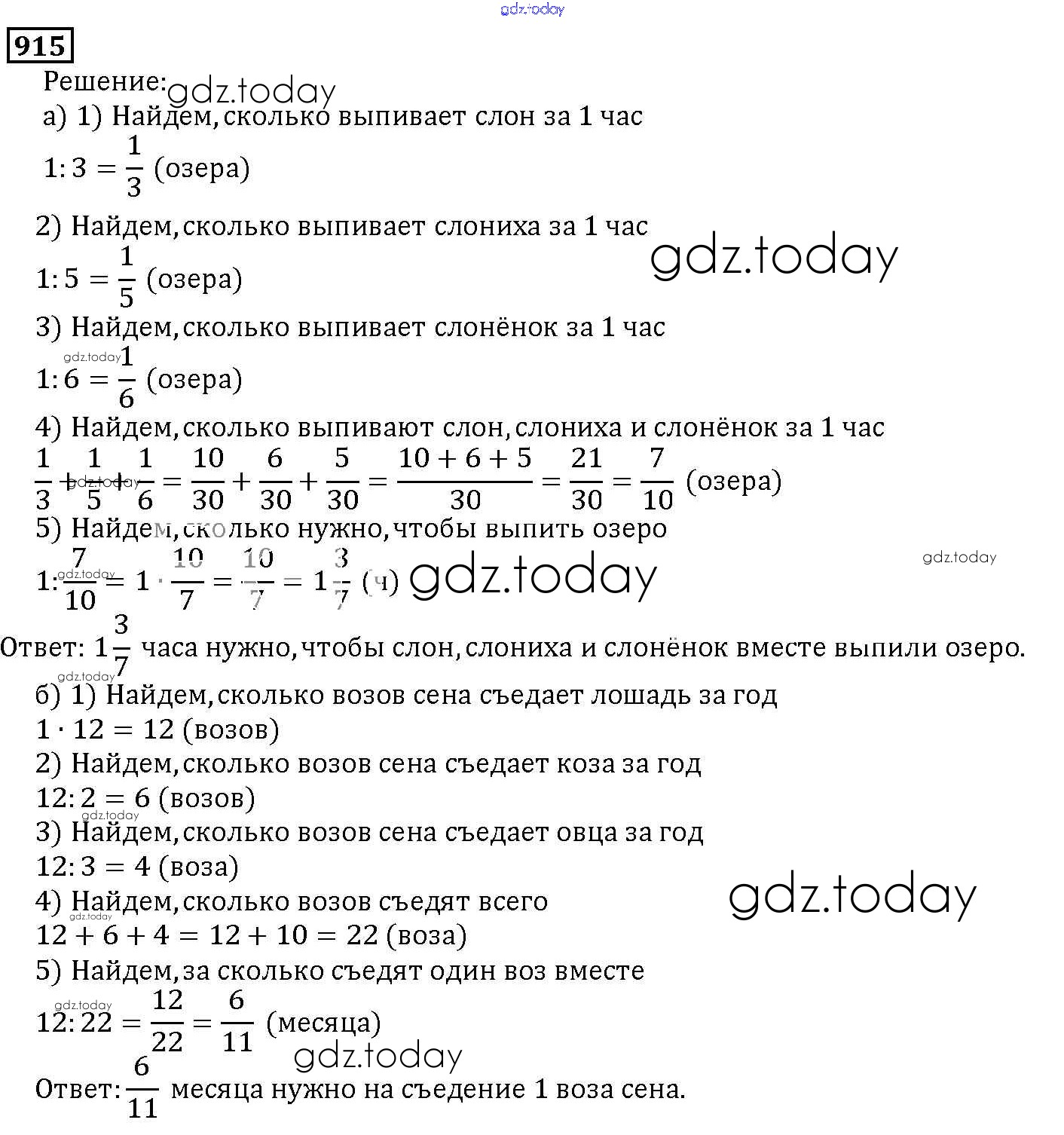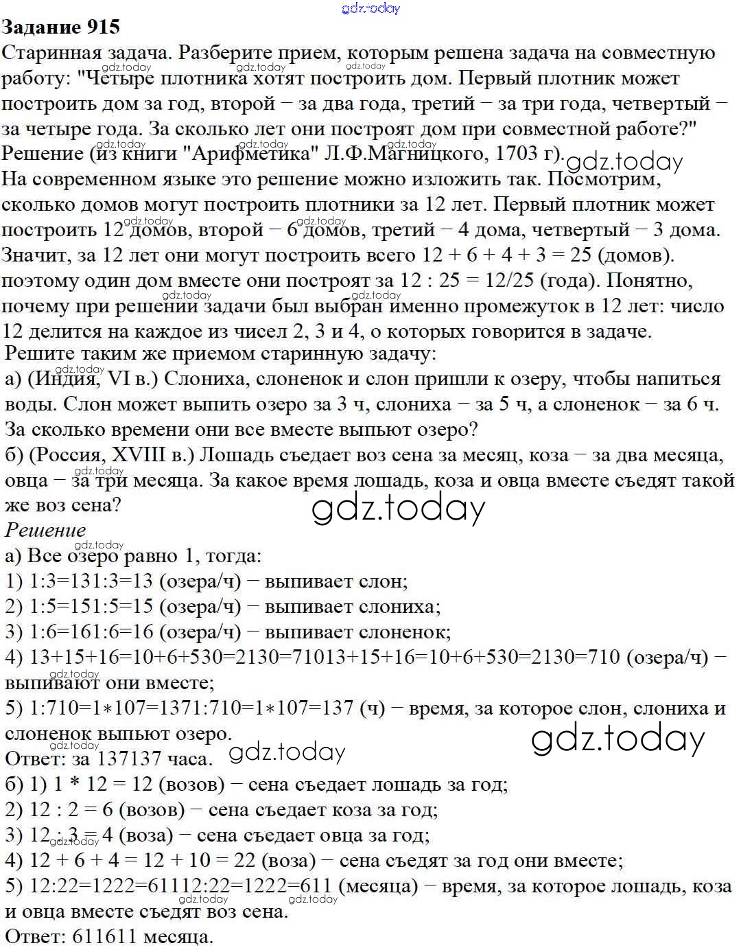 На страницах сайта gdz.today вы найдете учебный и вспомогательный материал, направленный на улучшения знаний школьной программы. ГДЗ - онлайн мир знаний 9.7. Задачи на совместную работу Глава 9. Действия с дробями 915 Учебнику по Математике для 5 класса Дорофеев, Шарыгин Просвещение 2015