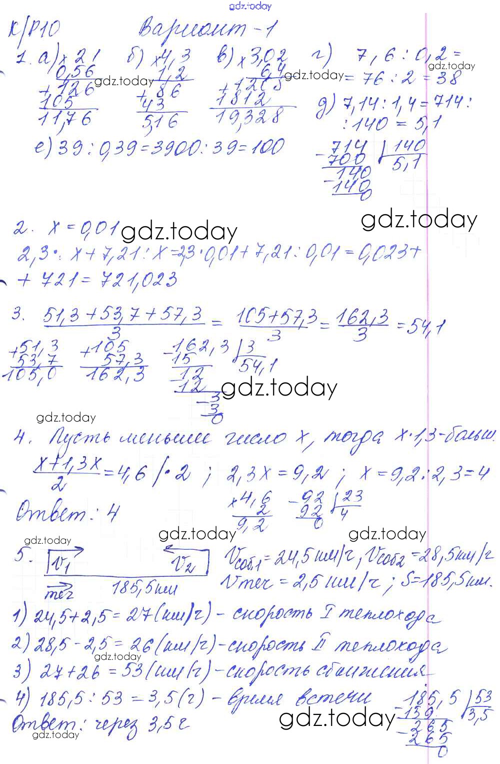 Ответы к Решение к КР-10. Варианты 1 Контрольным работам по Математике для 5 класса Дудницын, Кронгауз Экзамен УМК 2011