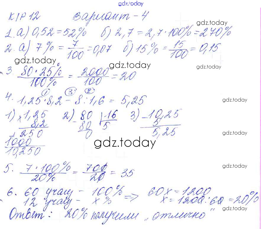 Ответы к Решение к КР-12. Варианты 4 Контрольным работам по Математике для 5 класса Дудницын, Кронгауз Экзамен УМК 2011