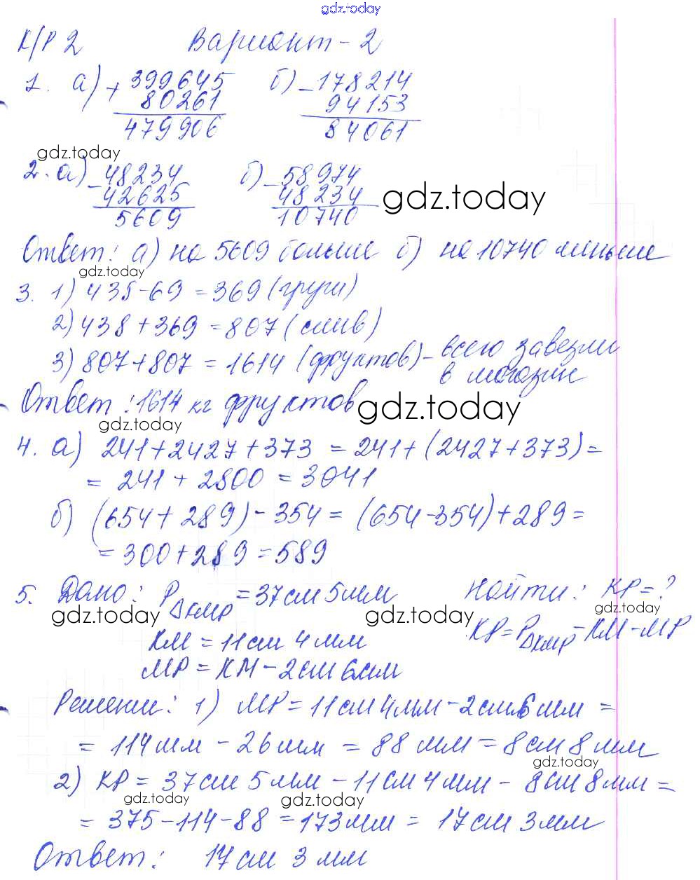 Ответы к Решение к КР-2. Варианты 2 Контрольным работам по Математике для 5 класса Дудницын, Кронгауз Экзамен УМК 2011