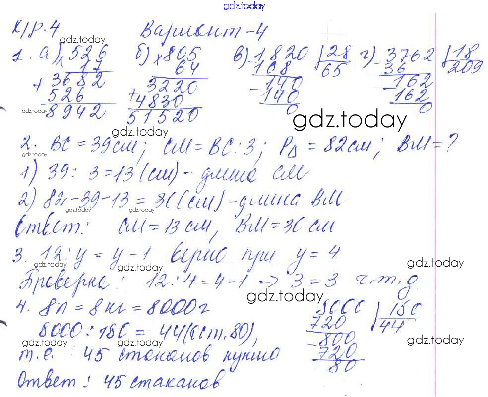 Ответы к Решение к КР-4. Варианты 4 Контрольным работам по Математике для 5 класса Дудницын, Кронгауз Экзамен УМК 2011