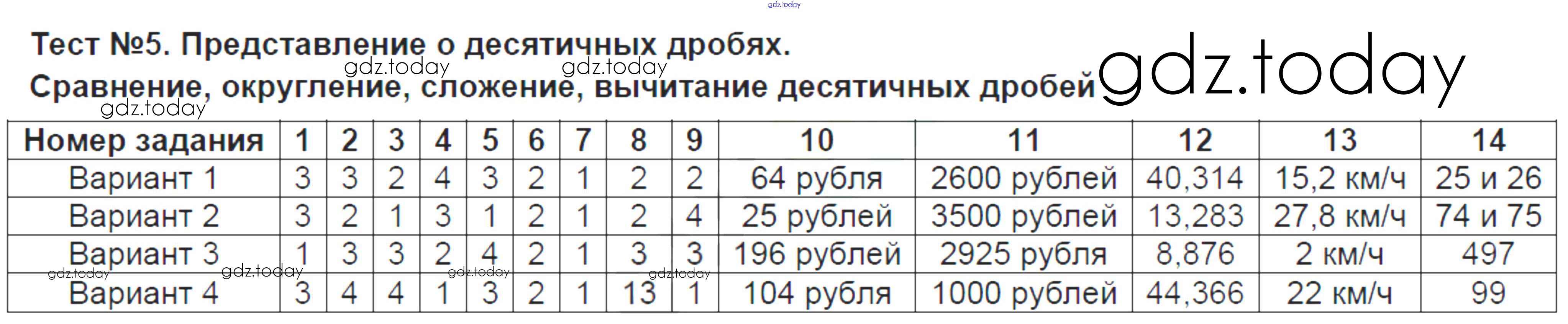 Ответы к Решение к тестам Тест №5. Представление о десятичных дробях Тестам по Математике для 5 класса Ерина Экзамен УМК 2017
