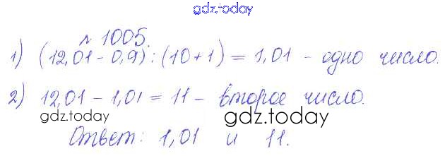 Ответы к Решение. Задачи 1005 Сборнику задач и упражнений по Математике для 5 класса Гамбарин, Зубарева Мнемозина 2011
