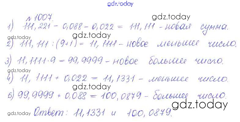 Ответы к Решение. Задачи 1007 Сборнику задач и упражнений по Математике для 5 класса Гамбарин, Зубарева Мнемозина 2011