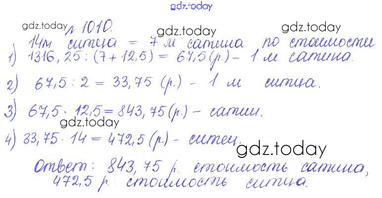 На страницах сайта gdz.today вы найдете учебный и вспомогательный материал, направленный на улучшения знаний школьной программы. ГДЗ - онлайн мир знаний Решение. Задачи 1010 Сборнику задач и упражнений по Математике для 5 класса Гамбарин, Зубарева Мнемозина 2011