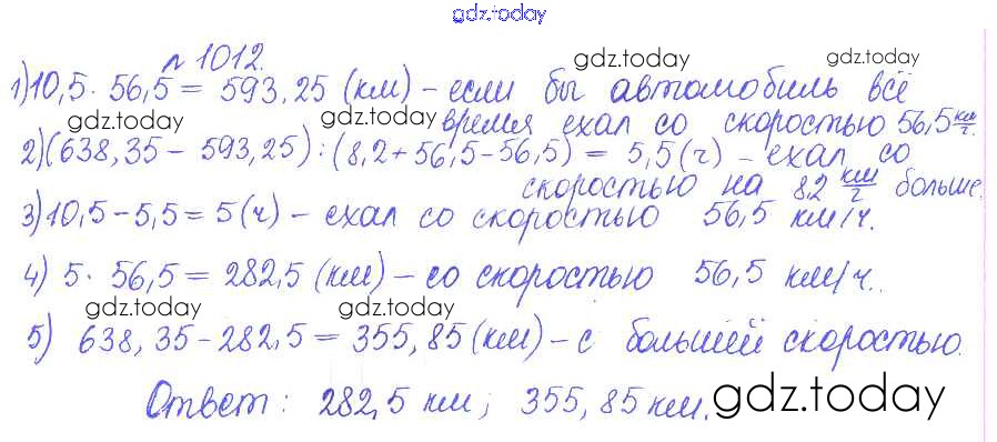 На страницах сайта gdz.today вы найдете учебный и вспомогательный материал, направленный на улучшения знаний школьной программы. ГДЗ - онлайн мир знаний Решение. Задачи 1012 Сборнику задач и упражнений по Математике для 5 класса Гамбарин, Зубарева Мнемозина 2011