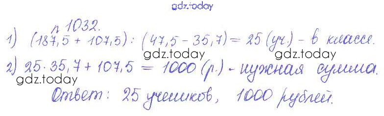 На страницах сайта gdz.today вы найдете учебный и вспомогательный материал, направленный на улучшения знаний школьной программы. ГДЗ - онлайн мир знаний Решение. Задачи 1032 Сборнику задач и упражнений по Математике для 5 класса Гамбарин, Зубарева Мнемозина 2011