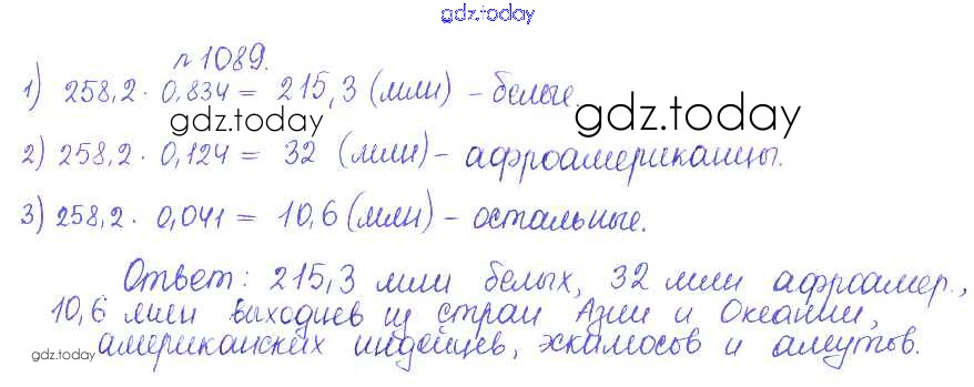 Ответы к Решение. Задачи 1089 Сборнику задач и упражнений по Математике для 5 класса Гамбарин, Зубарева Мнемозина 2011