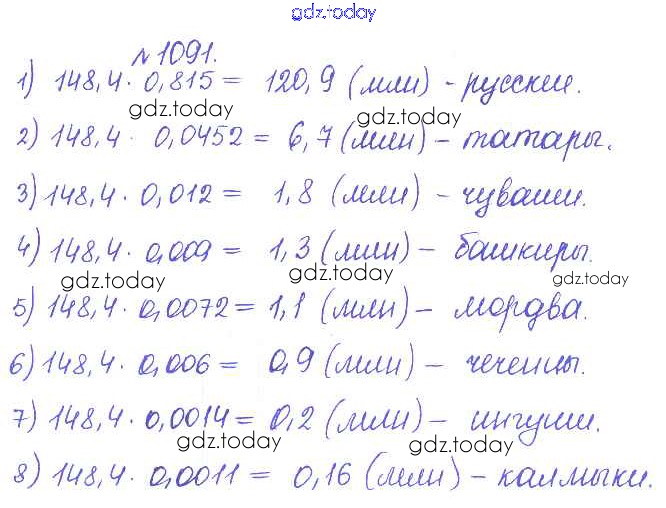 Ответы к Решение. Задачи 1091 Сборнику задач и упражнений по Математике для 5 класса Гамбарин, Зубарева Мнемозина 2011