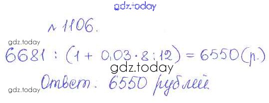 Ответы к Решение. Задачи 1106 Сборнику задач и упражнений по Математике для 5 класса Гамбарин, Зубарева Мнемозина 2011