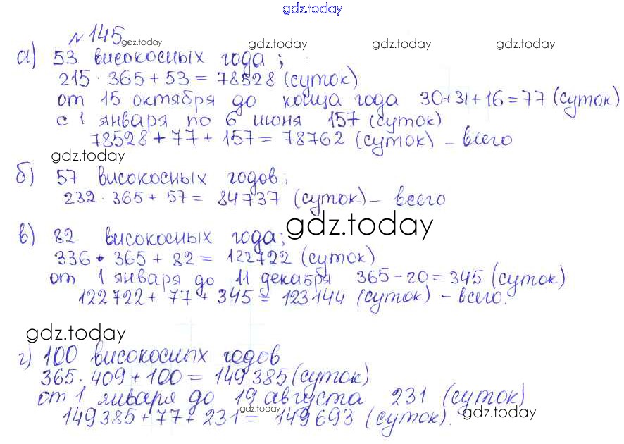 На страницах сайта gdz.today вы найдете учебный и вспомогательный материал, направленный на улучшения знаний школьной программы. ГДЗ - онлайн мир знаний Решение. Задачи 145 Сборнику задач и упражнений по Математике для 5 класса Гамбарин, Зубарева Мнемозина 2011