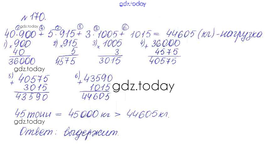 Ответы к Решение. Задачи 170 Сборнику задач и упражнений по Математике для 5 класса Гамбарин, Зубарева Мнемозина 2011