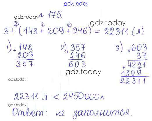 Ответы к Решение. Задачи 175 Сборнику задач и упражнений по Математике для 5 класса Гамбарин, Зубарева Мнемозина 2011
