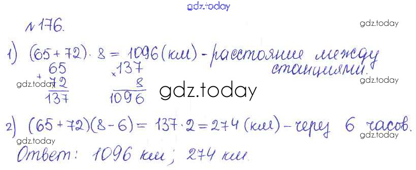 Ответы к Решение. Задачи 176 Сборнику задач и упражнений по Математике для 5 класса Гамбарин, Зубарева Мнемозина 2011