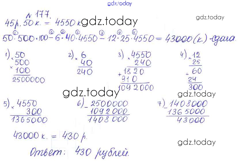 Ответы к Решение. Задачи 177 Сборнику задач и упражнений по Математике для 5 класса Гамбарин, Зубарева Мнемозина 2011