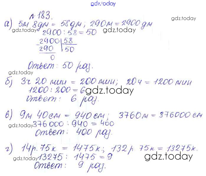 Ответы к Решение. Задачи 183 Сборнику задач и упражнений по Математике для 5 класса Гамбарин, Зубарева Мнемозина 2011