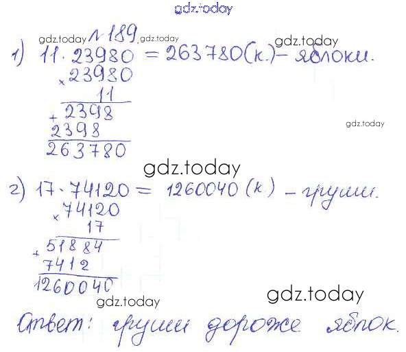 Ответы к Решение. Задачи 189 Сборнику задач и упражнений по Математике для 5 класса Гамбарин, Зубарева Мнемозина 2011
