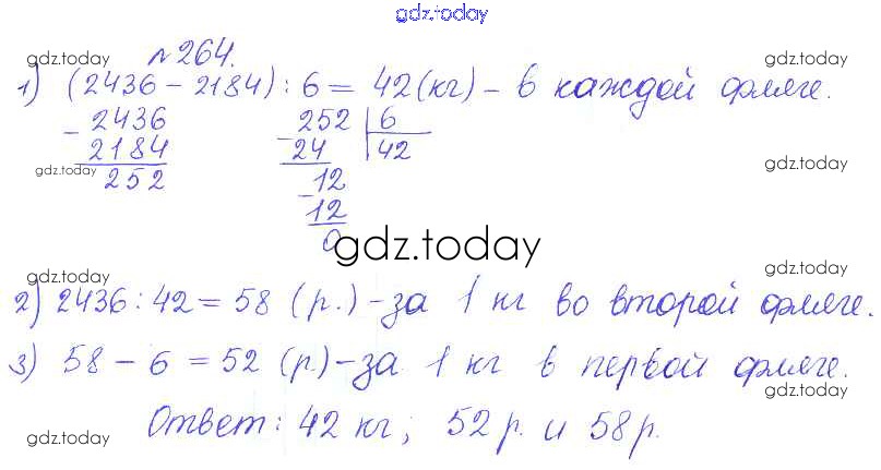 На страницах сайта gdz.today вы найдете учебный и вспомогательный материал, направленный на улучшения знаний школьной программы. ГДЗ - онлайн мир знаний Решение. Задачи 264 Сборнику задач и упражнений по Математике для 5 класса Гамбарин, Зубарева Мнемозина 2011