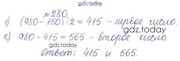Ответы к Решение. Задачи 280 Сборнику задач и упражнений по Математике для 5 класса Гамбарин, Зубарева Мнемозина 2011