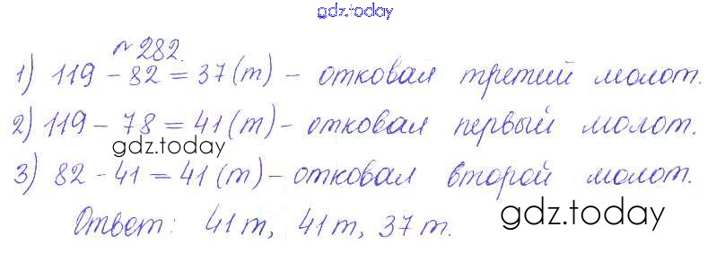 На страницах сайта gdz.today вы найдете учебный и вспомогательный материал, направленный на улучшения знаний школьной программы. ГДЗ - онлайн мир знаний Решение. Задачи 282 Сборнику задач и упражнений по Математике для 5 класса Гамбарин, Зубарева Мнемозина 2011