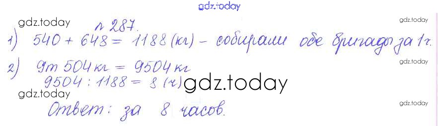 Ответы к Решение. Задачи 287 Сборнику задач и упражнений по Математике для 5 класса Гамбарин, Зубарева Мнемозина 2011