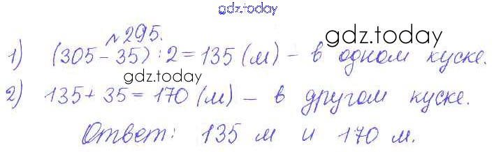 На страницах сайта gdz.today вы найдете учебный и вспомогательный материал, направленный на улучшения знаний школьной программы. ГДЗ - онлайн мир знаний Решение. Задачи 295 Сборнику задач и упражнений по Математике для 5 класса Гамбарин, Зубарева Мнемозина 2011