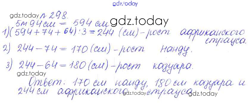 Ответы к Решение. Задачи 298 Сборнику задач и упражнений по Математике для 5 класса Гамбарин, Зубарева Мнемозина 2011