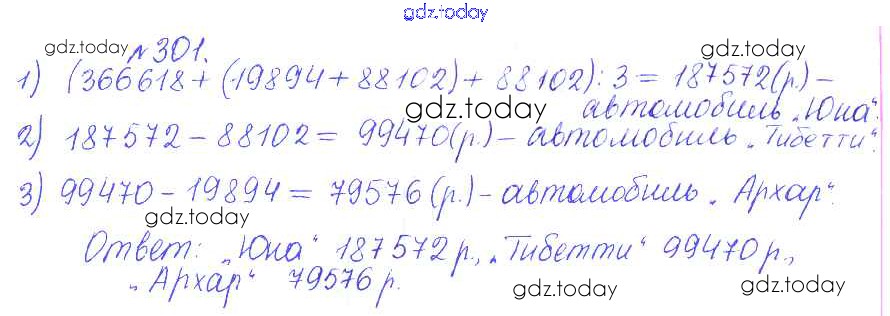 Ответы к Решение. Задачи 301 Сборнику задач и упражнений по Математике для 5 класса Гамбарин, Зубарева Мнемозина 2011