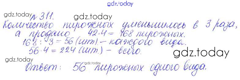 На страницах сайта gdz.today вы найдете учебный и вспомогательный материал, направленный на улучшения знаний школьной программы. ГДЗ - онлайн мир знаний Решение. Задачи 311 Сборнику задач и упражнений по Математике для 5 класса Гамбарин, Зубарева Мнемозина 2011