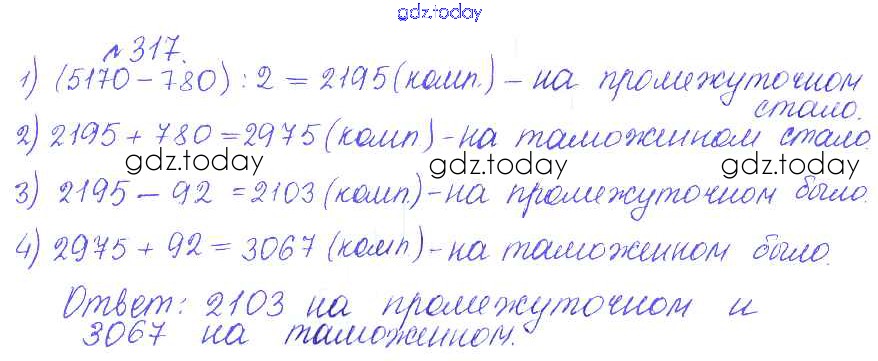 Ответы к Решение. Задачи 317 Сборнику задач и упражнений по Математике для 5 класса Гамбарин, Зубарева Мнемозина 2011