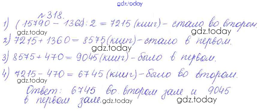 Ответы к Решение. Задачи 318 Сборнику задач и упражнений по Математике для 5 класса Гамбарин, Зубарева Мнемозина 2011