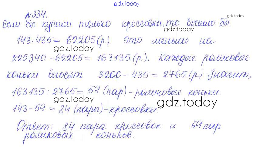 Ответы к Решение. Задачи 334 Сборнику задач и упражнений по Математике для 5 класса Гамбарин, Зубарева Мнемозина 2011
