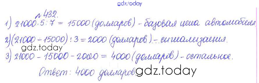 На страницах сайта gdz.today вы найдете учебный и вспомогательный материал, направленный на улучшения знаний школьной программы. ГДЗ - онлайн мир знаний Решение. Задачи 432 Сборнику задач и упражнений по Математике для 5 класса Гамбарин, Зубарева Мнемозина 2011