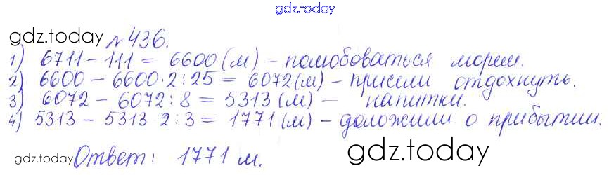 На страницах сайта gdz.today вы найдете учебный и вспомогательный материал, направленный на улучшения знаний школьной программы. ГДЗ - онлайн мир знаний Решение. Задачи 436 Сборнику задач и упражнений по Математике для 5 класса Гамбарин, Зубарева Мнемозина 2011