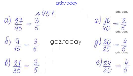 Ответы к Решение. Задачи 451 Сборнику задач и упражнений по Математике для 5 класса Гамбарин, Зубарева Мнемозина 2011