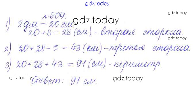 На страницах сайта gdz.today вы найдете учебный и вспомогательный материал, направленный на улучшения знаний школьной программы. ГДЗ - онлайн мир знаний Решение. Задачи 609 Сборнику задач и упражнений по Математике для 5 класса Гамбарин, Зубарева Мнемозина 2011