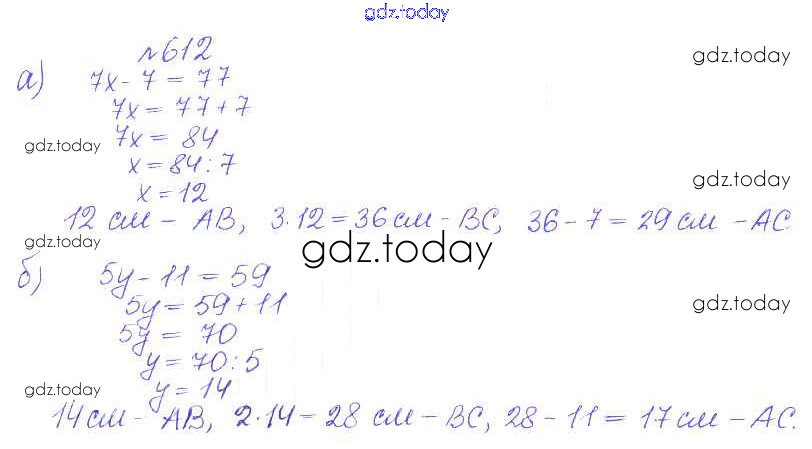 Ответы к Решение. Задачи 612 Сборнику задач и упражнений по Математике для 5 класса Гамбарин, Зубарева Мнемозина 2011