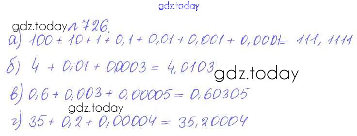 Ответы к Решение. Задачи 726 Сборнику задач и упражнений по Математике для 5 класса Гамбарин, Зубарева Мнемозина 2011