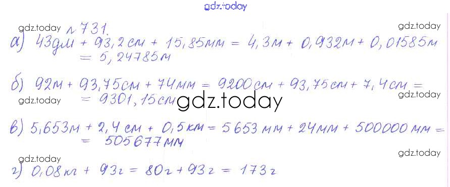 Ответы к Решение. Задачи 731 Сборнику задач и упражнений по Математике для 5 класса Гамбарин, Зубарева Мнемозина 2011
