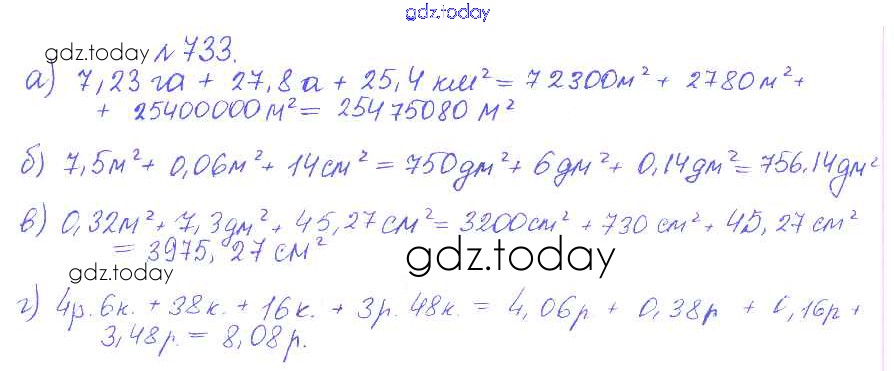 На страницах сайта gdz.today вы найдете учебный и вспомогательный материал, направленный на улучшения знаний школьной программы. ГДЗ - онлайн мир знаний Решение. Задачи 733 Сборнику задач и упражнений по Математике для 5 класса Гамбарин, Зубарева Мнемозина 2011
