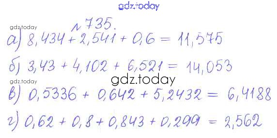 Ответы к Решение. Задачи 735 Сборнику задач и упражнений по Математике для 5 класса Гамбарин, Зубарева Мнемозина 2011