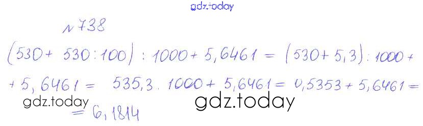 Ответы к Решение. Задачи 738 Сборнику задач и упражнений по Математике для 5 класса Гамбарин, Зубарева Мнемозина 2011
