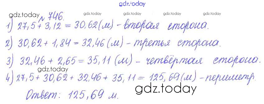 Ответы к Решение. Задачи 746 Сборнику задач и упражнений по Математике для 5 класса Гамбарин, Зубарева Мнемозина 2011