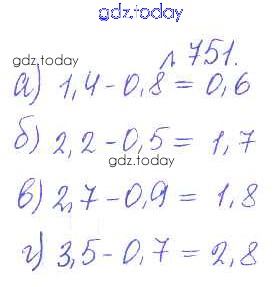 Ответы к Решение. Задачи 751 Сборнику задач и упражнений по Математике для 5 класса Гамбарин, Зубарева Мнемозина 2011