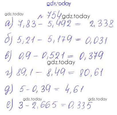 Ответы к Решение. Задачи 754 Сборнику задач и упражнений по Математике для 5 класса Гамбарин, Зубарева Мнемозина 2011