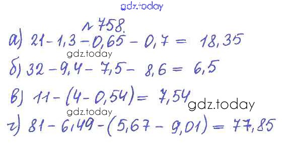 Ответы к Решение. Задачи 758 Сборнику задач и упражнений по Математике для 5 класса Гамбарин, Зубарева Мнемозина 2011