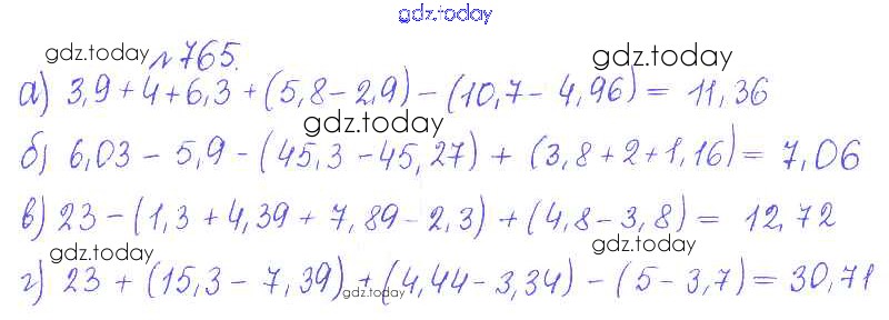 Ответы к Решение. Задачи 765 Сборнику задач и упражнений по Математике для 5 класса Гамбарин, Зубарева Мнемозина 2011
