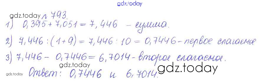 Ответы к Решение. Задачи 793 Сборнику задач и упражнений по Математике для 5 класса Гамбарин, Зубарева Мнемозина 2011