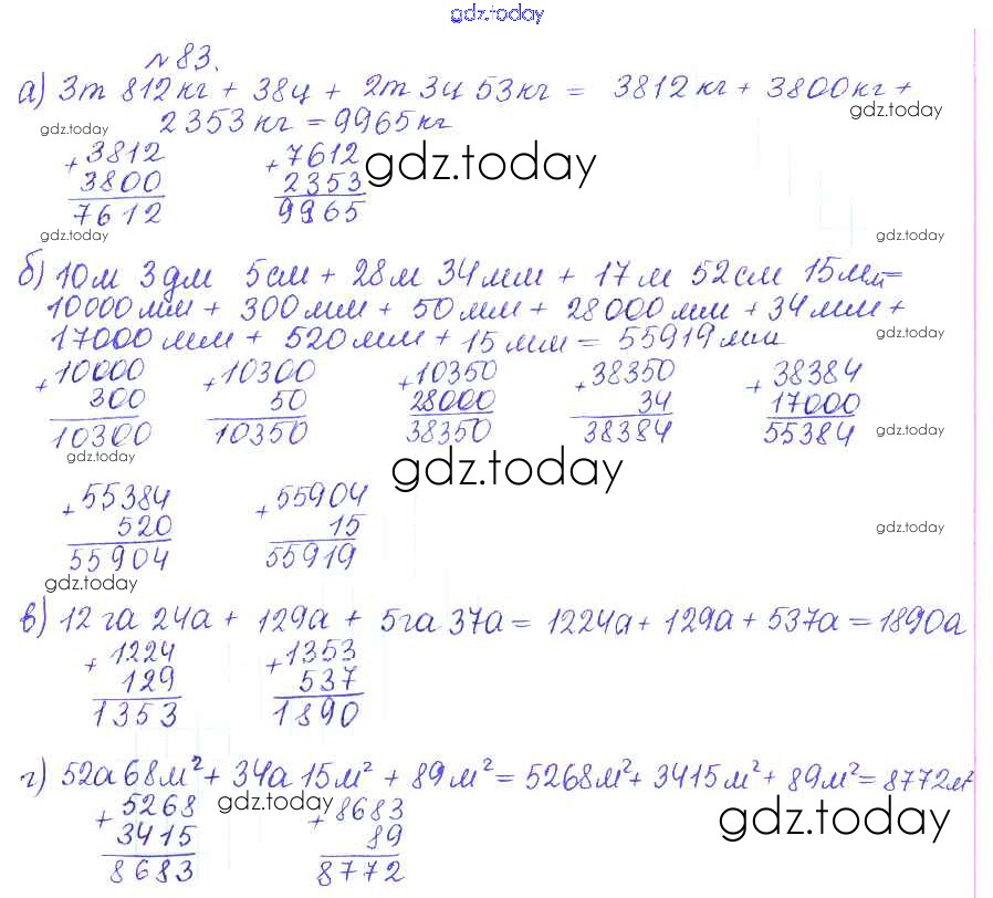 На страницах сайта gdz.today вы найдете учебный и вспомогательный материал, направленный на улучшения знаний школьной программы. ГДЗ - онлайн мир знаний Решение. Задачи 83 Сборнику задач и упражнений по Математике для 5 класса Гамбарин, Зубарева Мнемозина 2011