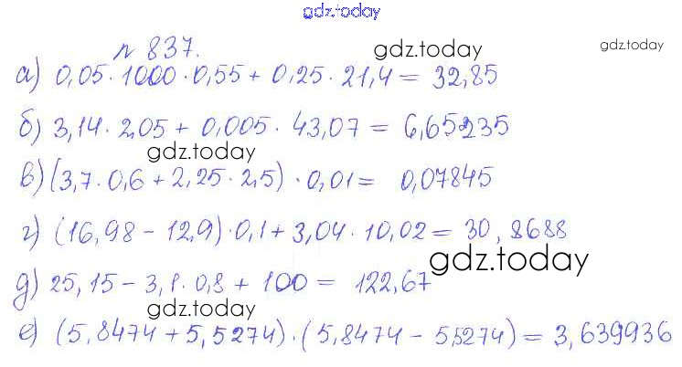 Ответы к Решение. Задачи 837 Сборнику задач и упражнений по Математике для 5 класса Гамбарин, Зубарева Мнемозина 2011